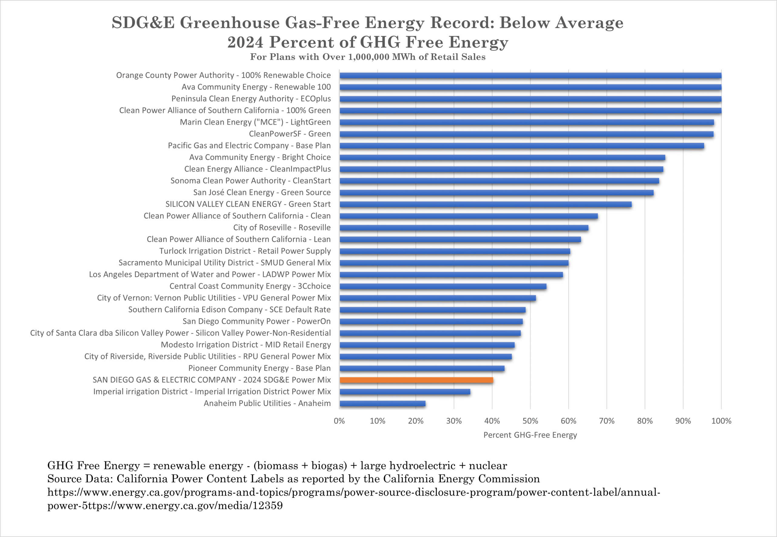 Yes. In terms of customer plans with over 1,000,000 MWh of retail sales, SDG&E has a much lower percentage of zero emission energy.
