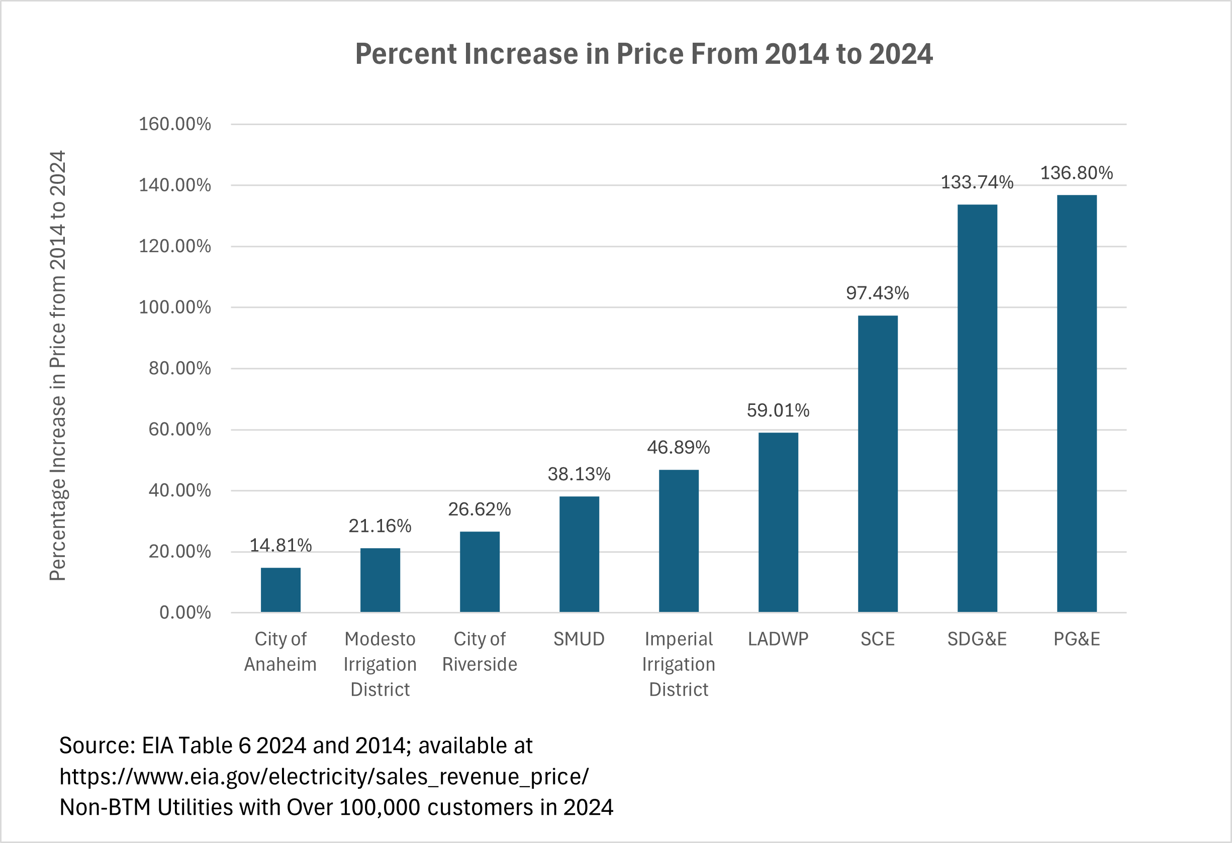 Yes. Between 2014 and 2024, the average residential rate for SDG&E as increased by 133.74%, increasing from 18.66 cents/kWh to 43.63 cents/kWh. In California, this increase is second only to PG&E, whose average residential rate increased by 136.80% from 16.73 cents/kWh to 39.62 cents/kWh.
